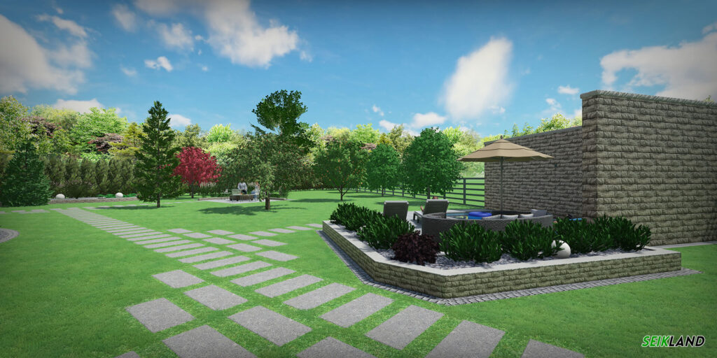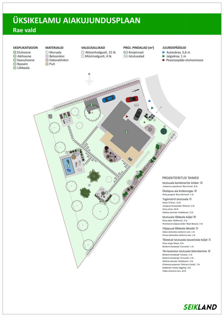 Olemasoleva aia lahendusele uue kujunduse loomisega säilitati maksimaalselt väärtuslikud üksikpuud ja põõsad, millele lisati juurde vähest hooldust vajavad ilutaimed.