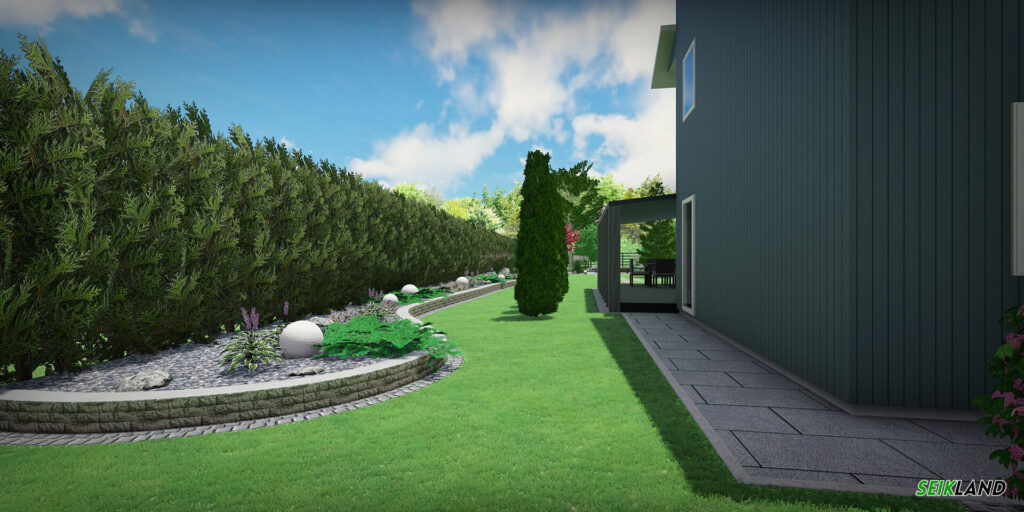 1900m2 suurusele kinnistule koostatud aiakujundusprojekt, millega loodi võimalikult vähest hooldust vajav koduaed. Minimaalset tähelepanu vajav taimevalik ja robotniiduki järgset hooldust lihtsustavad kujundusvõtted annavad võimaluse koduaeda rohkem nautida.